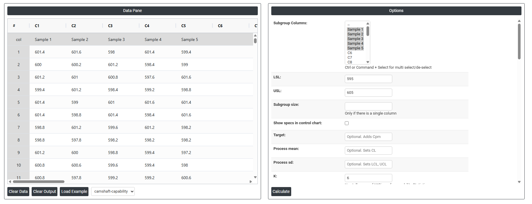 On the left part, Data Pane is present. In the Data Pane, each row makes one subgroup. Data can be fed manually or the one can completely copy (Ctrl+C) the data from excel sheet and paste (Ctrl+V) it here.