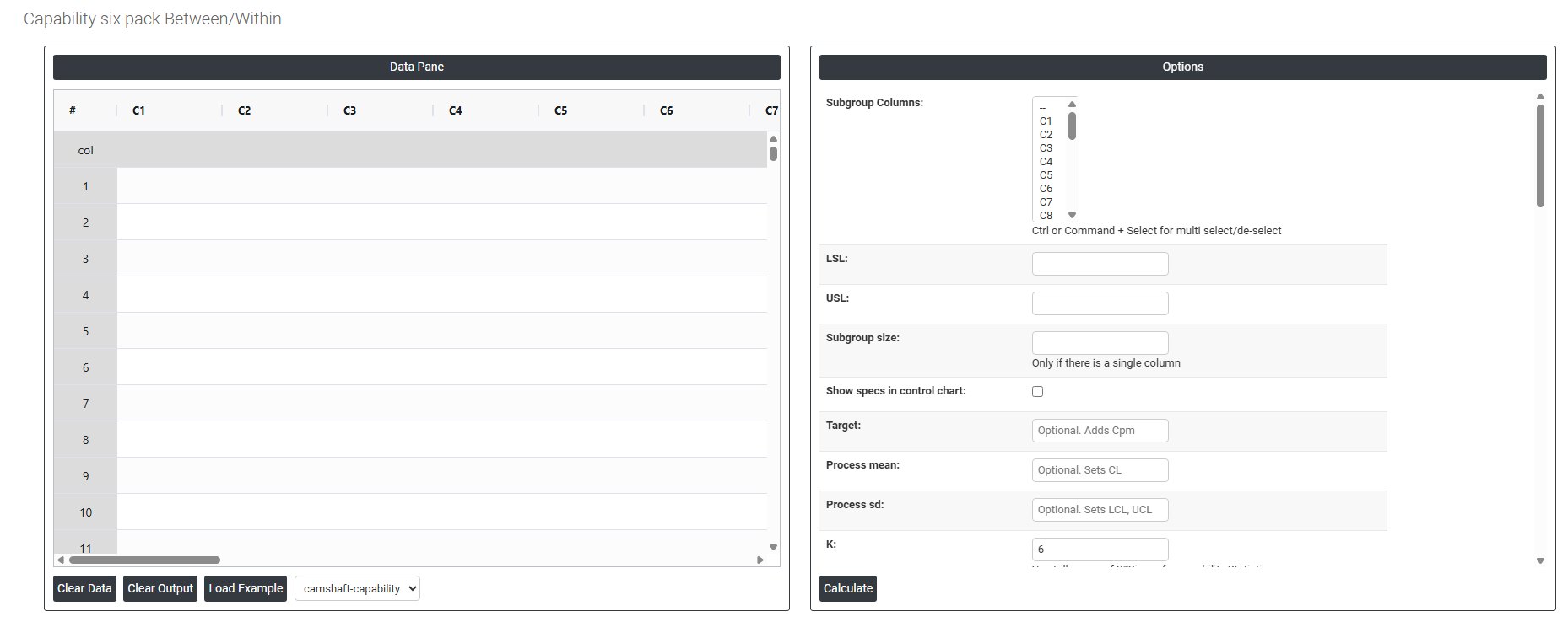 2. On the home page, choose Statistical Tool> Process Capability >Capability Six Pack (Between/Within) .