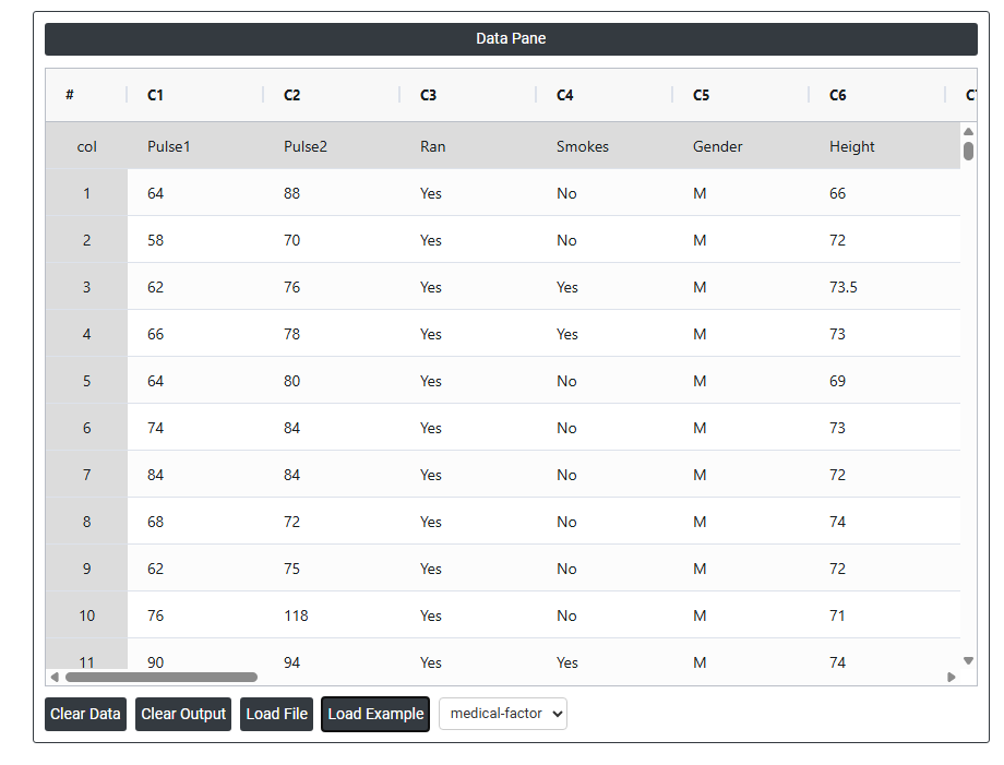 - Next, update the data manually or can completely copy (Ctrl+C) the data from excel sheet or paste (Ctrl+V) it or else there is say option Load Example where the example data will be loaded.