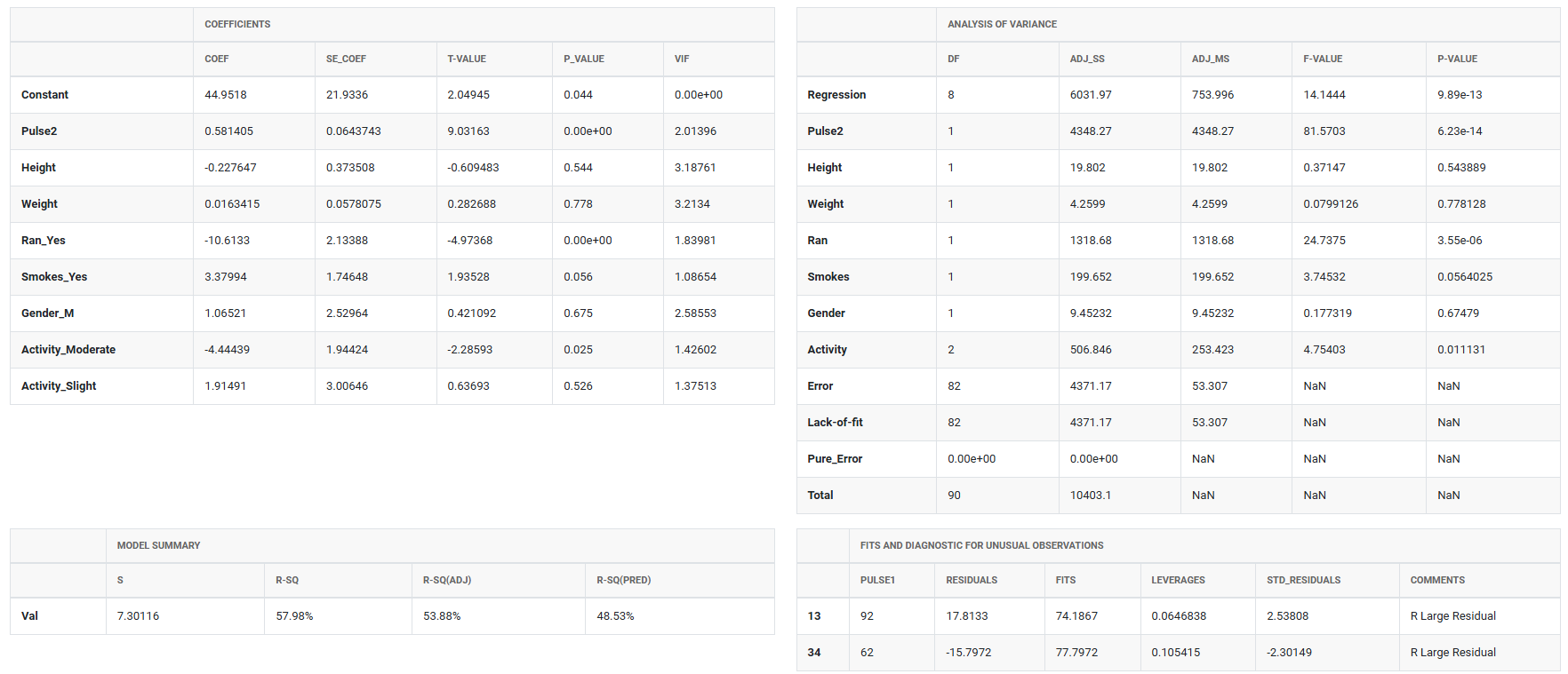 - Check for multicollinearity among predictors — if severe, it becomes difficult to identify which predictors are truly significant. Use Variance Inflation Factors (VIF) in the Coefficients table to assess severity.