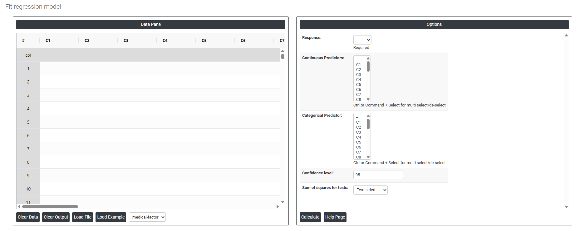 - On the home page, choose Statistical Tool> Regression > Fit Regression Model.