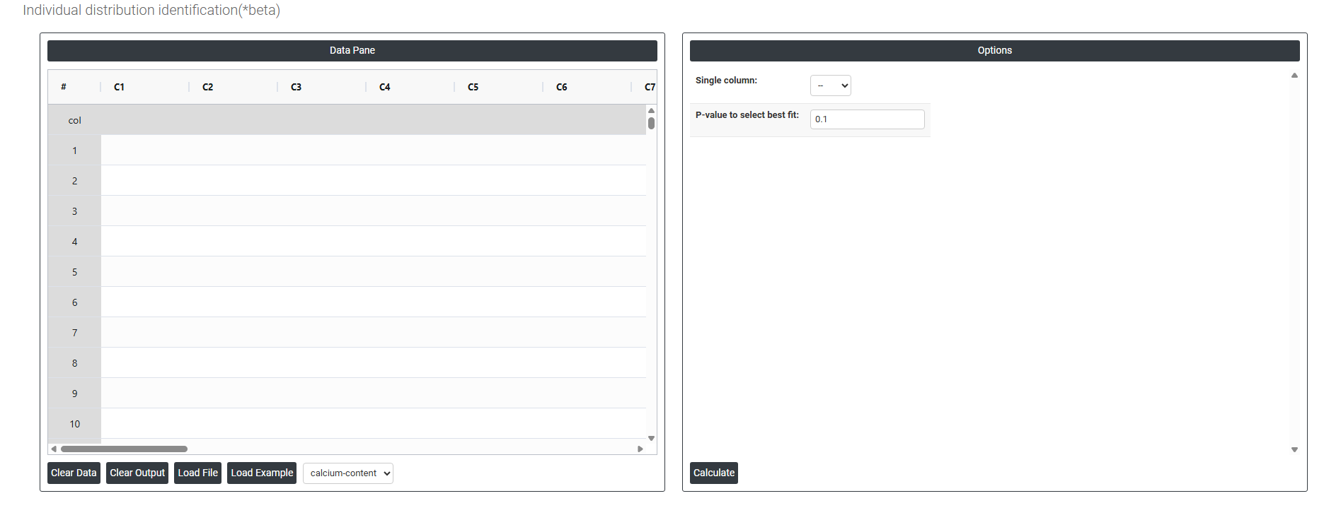 On the dashboard of Individual Distribution Identification, the window is separated into two parts.