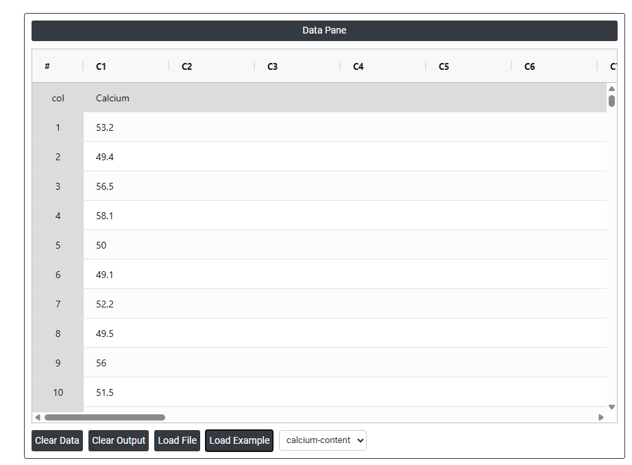 On the left part, Data Pane is present. In the Data Pane, each row makes one subgroup. Data can be fed manually or the one can completely copy (Ctrl+C) the data from excel sheet and paste (Ctrl+V) it here.
