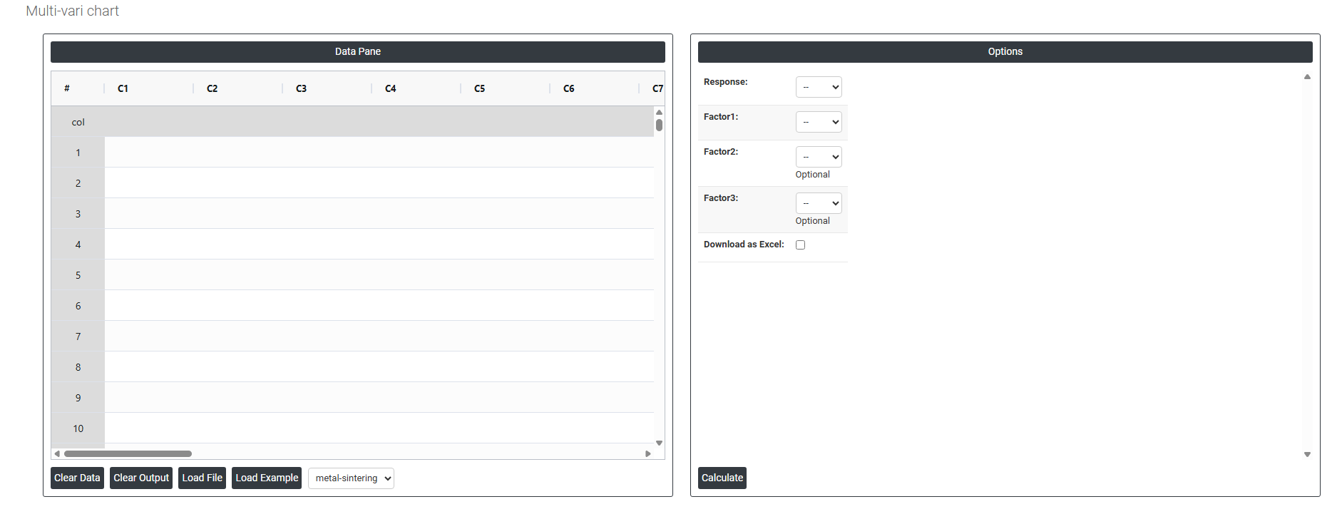 Download as Excel: This will display the result in an Excel format, which can be easily edited and reloaded for calculations using the load file option.