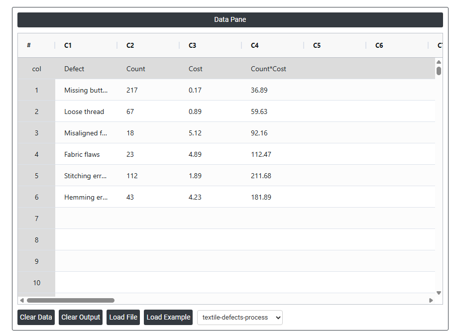 To prioritize improvement projects, an inspector from a clothing manufacturer examines various sources of clothing defects. The inspector carefully monitors and records the quantity and nature of these defects throughout the manufacturing process.