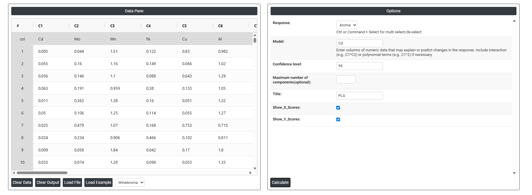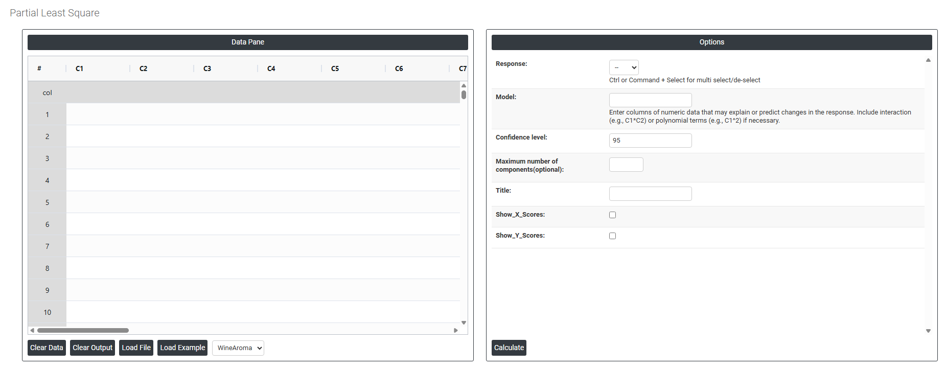 - On the home page, choose Statistical Tool>Regression >Partial Least Square .