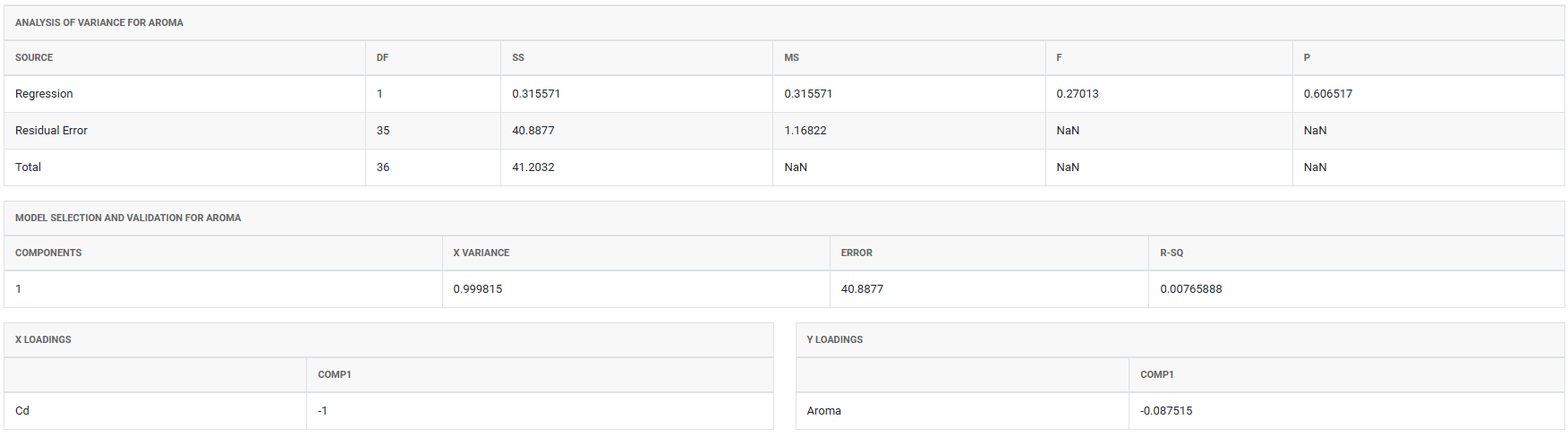 A wine producer seeks to understand how the chemical composition of their Pinot Noir wine influences its sensory evaluation. The dataset comprises 37 Pinot Noir samples, each characterized by concentrations of 17 elements (Cd, Mo, Mn, Ni, Cu, Al, Ba, Cr, Sr, Pb, B, Mg, Si, Na, Ca, P, K) and an aroma score assessed by a panel of judges. The objective is to develop a predictive model for the aroma score using the elemental concentrations. Additionally, the producer wants to include all the elemental concentrations as predictors, along with all two-way interactions involving cadmium (Cd). Given the relatively small sample size compared to the number of predictors, partial least squares (PLS) regression is chosen as the modeling approach. To evaluate this, performs the following steps: