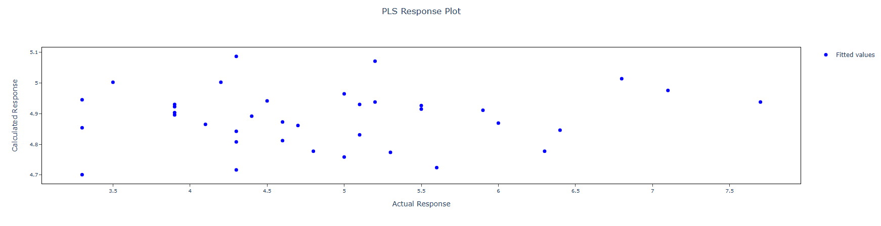 Show X Scores: Displays a plot of the component scores for the predictor variables. This helps you visually identify patterns, groupings, or outliers in the predictor data after the PLS components have been extracted — useful for understanding the structure within your input variables.