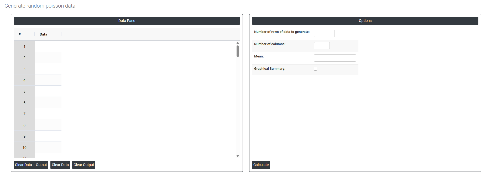 On the dashboard of Random Poisson Data, the window is separated into two parts.