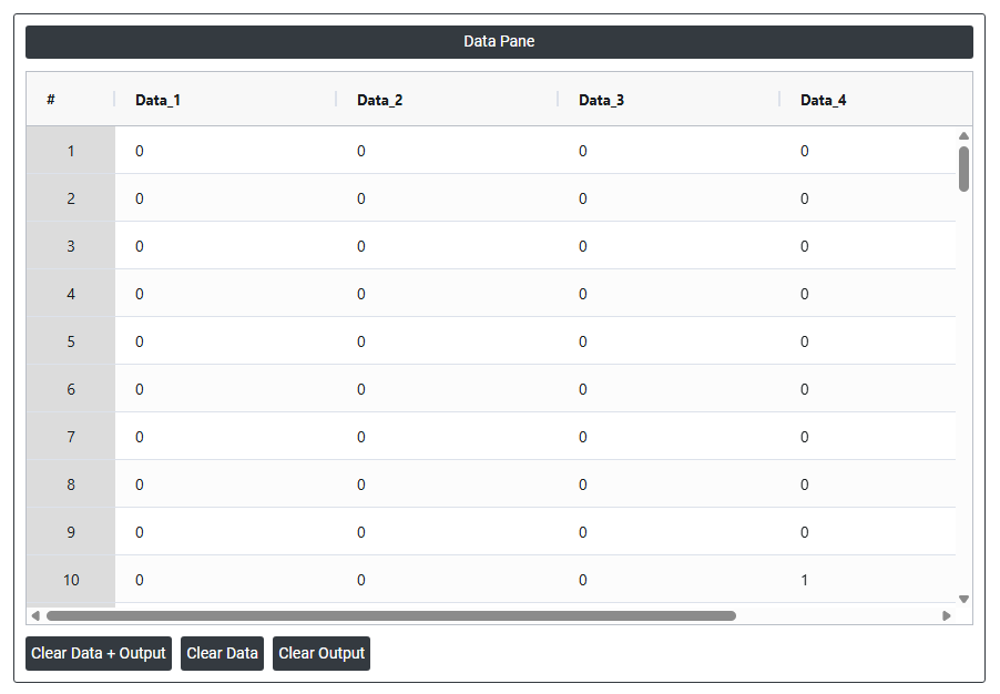 • Number of columns:  Specifies how many variables (columns) each row will have. For example, entering 3 will produce 3 columns of randomly generated data side by side in the data pane.
