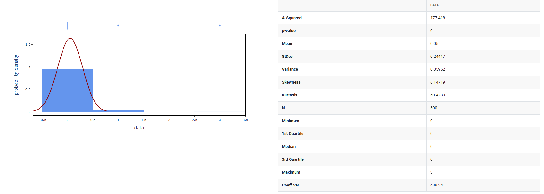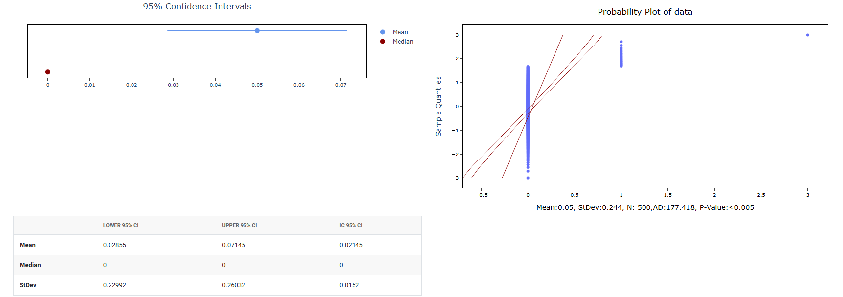 • Graphical summary: After the random data is generated using the mean and standard deviation you specified, this option produces a graphical analysis of that data such as a histogram showing how the generated values are distributed. It is a visual result based on the data that was just created.